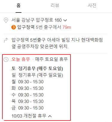 아래와 같이 오늘 휴무여부와