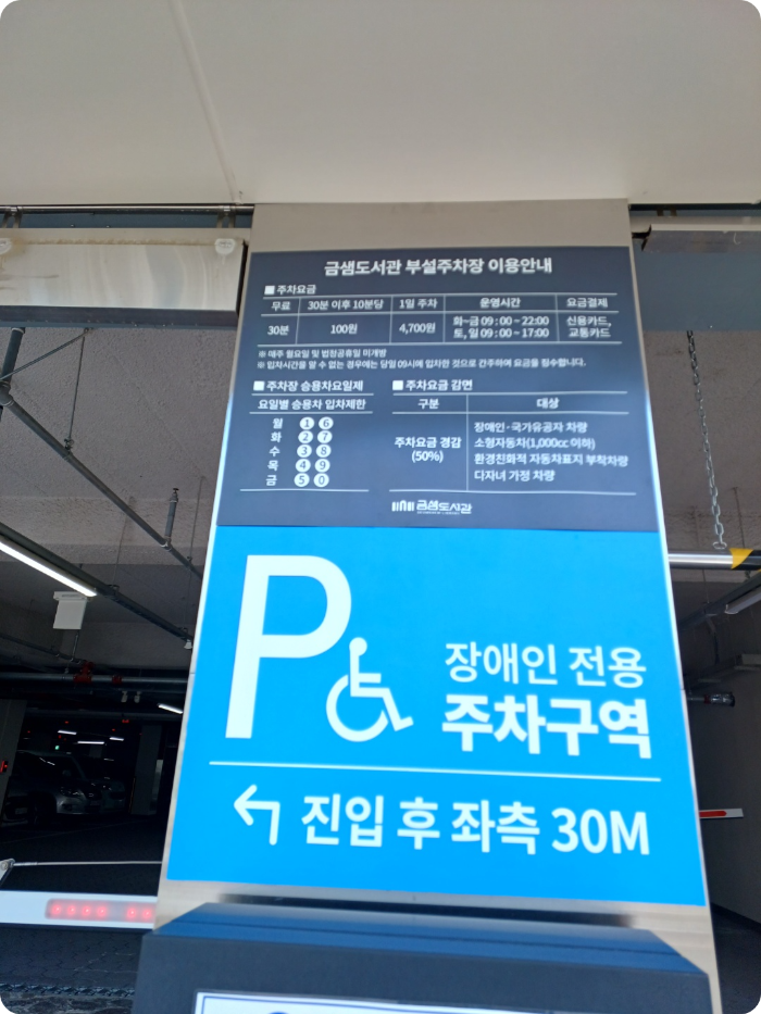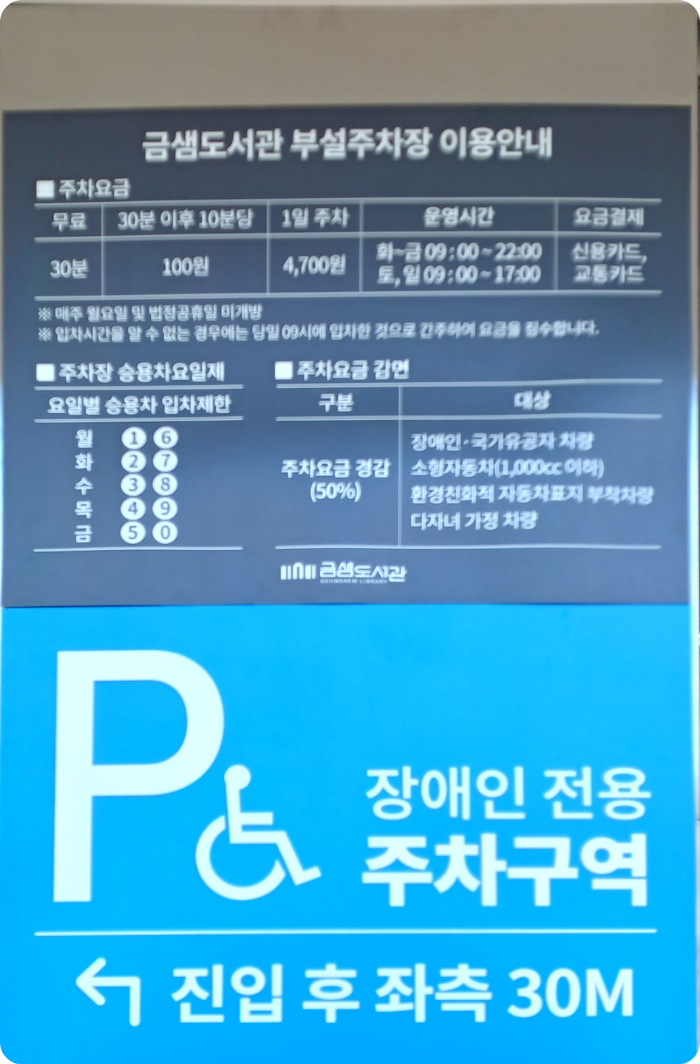 제가 직접이용해보니, 금샘도서관 부설주차장은 주차댓수가 적은지 항상 자리가 없었고,