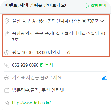 델 노트북이나 컴퓨터 등 제품들이 고장났을때 서비스센터를 찾는 방법에 대해서 살펴보았습니다. 지도를 통해서 찾으면 위 방법과 같이 아주 간단하게 알 수 있었습니다. 지도에서 매장을 찾고 그 매장에 대해서 자세히 검색하면 바로 끝!