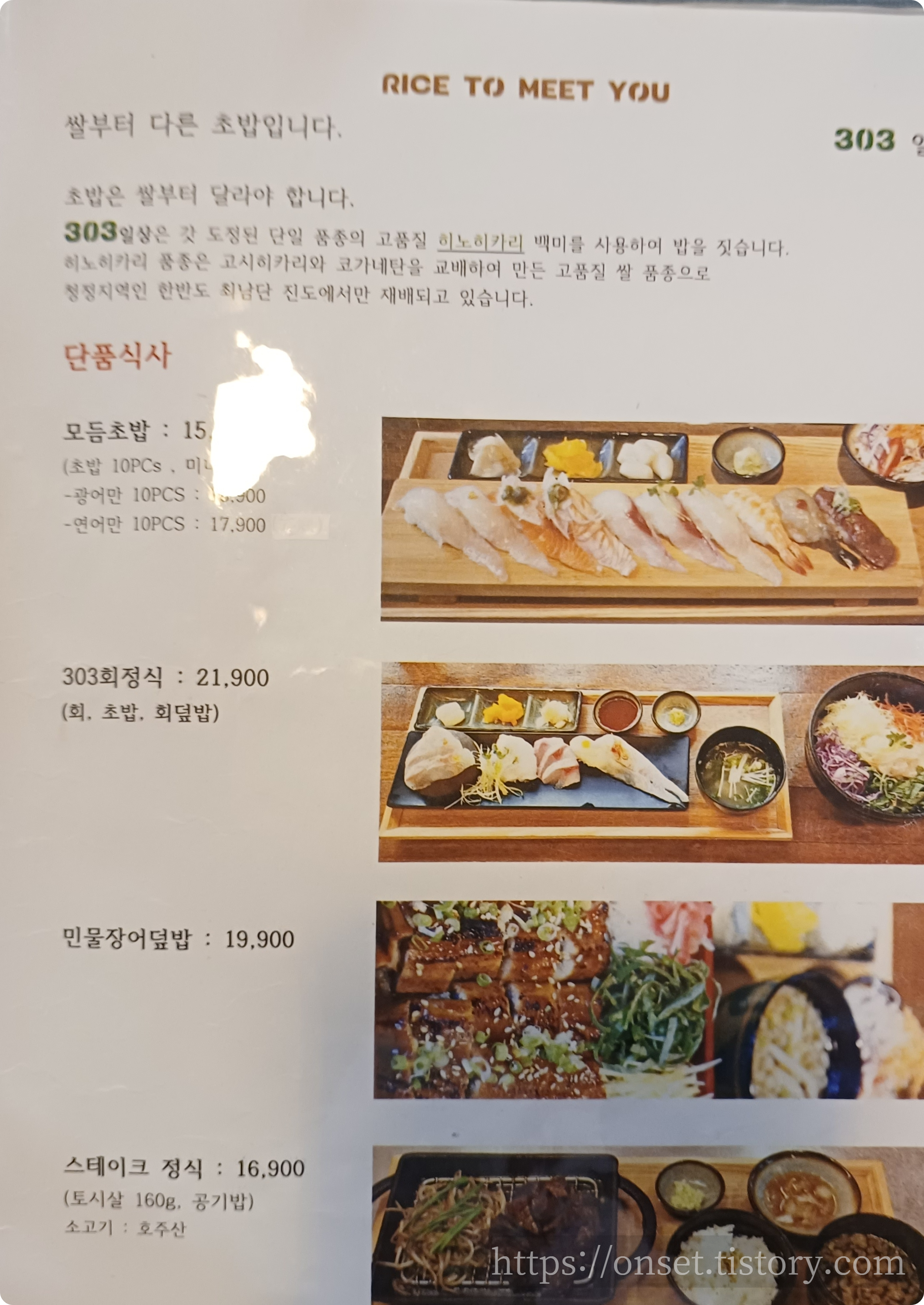 아래와 같기 303일상 메뉴판 사진을 찍었네요.^^